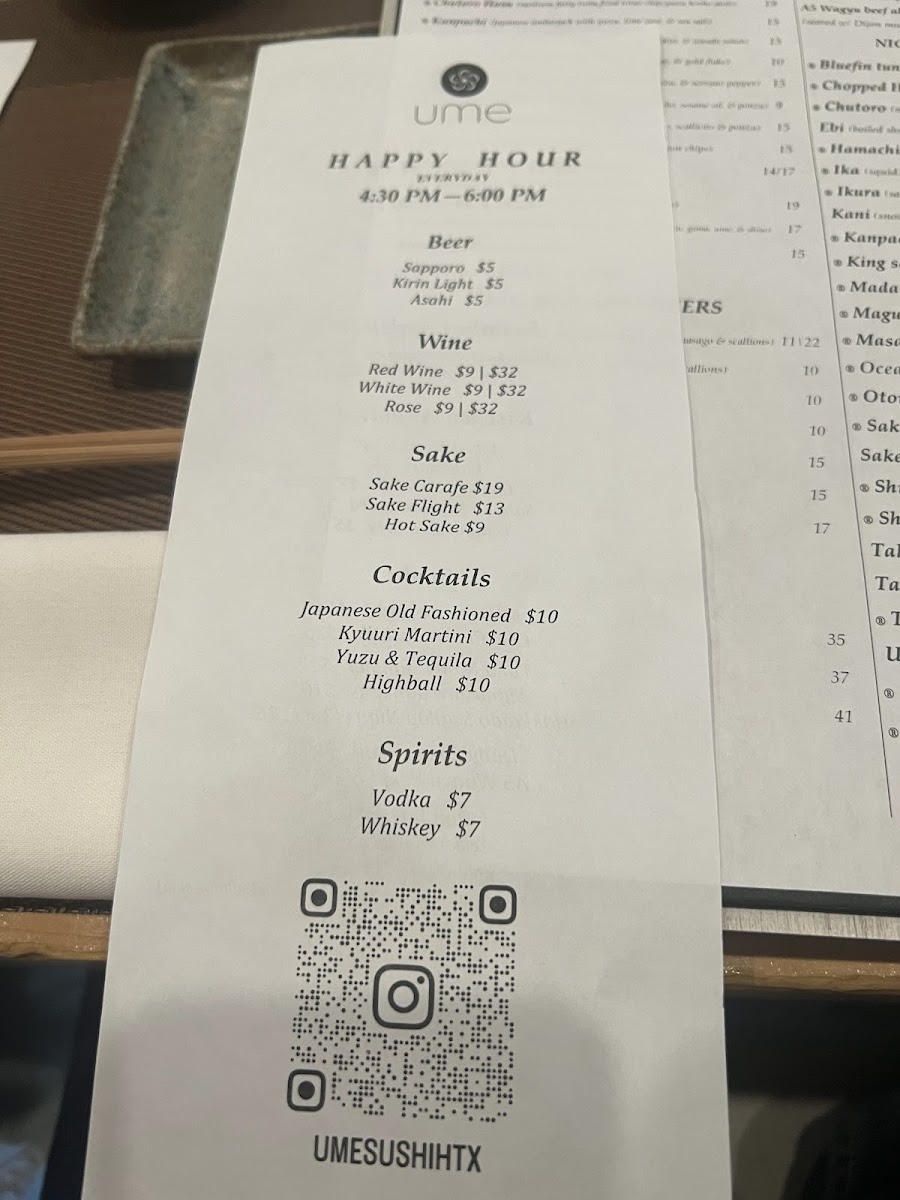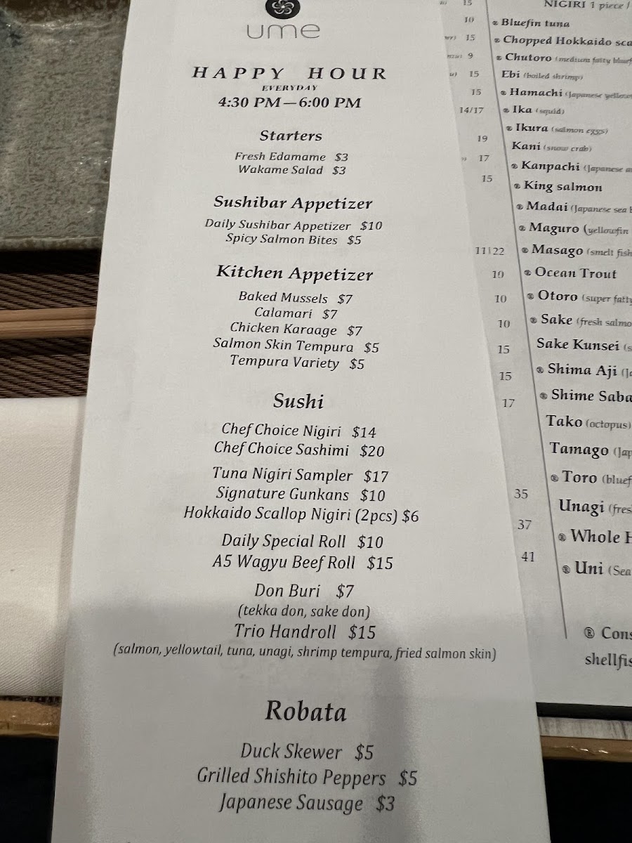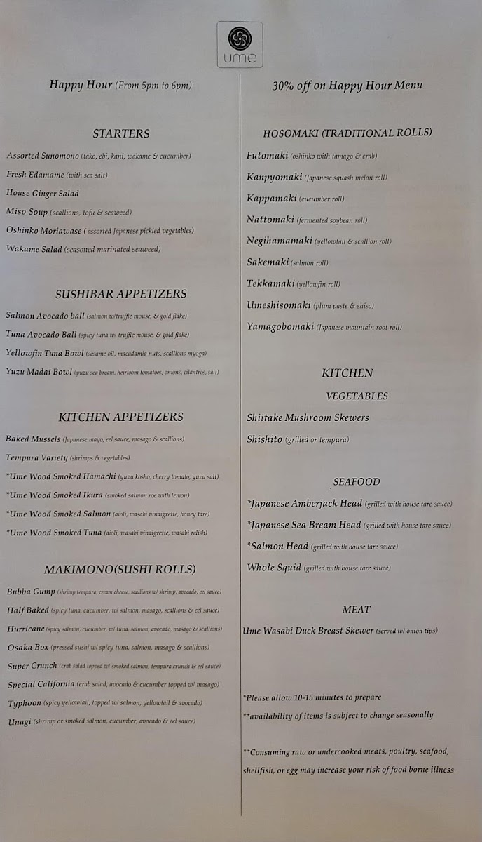 Ume’s menu reflects a refined sushi experience with a focus on fresh, thoughtfully prepared dishes that invite relaxed enjoyment. The menu is a harmonious blend of traditional and innovative offerings, suited for those who appreciate a quiet evening out or a special gathering.