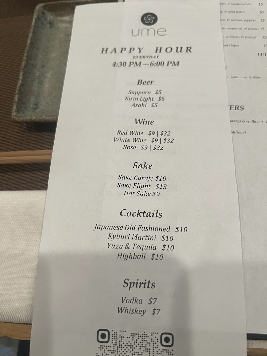 These dishes comfortably complement Ume’s calm and intimate atmosphere, making the menu ideal for date nights or leisurely dinners with friends. The thoughtful pacing of courses allows guests to appreciate both the food and the quiet rhythm of the space. Whether visiting for a midday meal or an evening out, the menu supports a mindful dining experience that balances the familiar with subtle sophistication.
